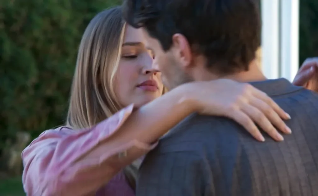 A short while later, Jo comes back outside as Eddie’s about to head off. She pulls him back and, without explanation, leans in to kiss him.