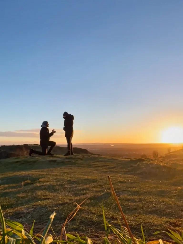 As mentioned, the couple are currently on holiday in Scotland. The photo they posted shows Adam down on one knee as the sun rises on the iconic Arthur’s Seat in Edinburgh, Scotland.