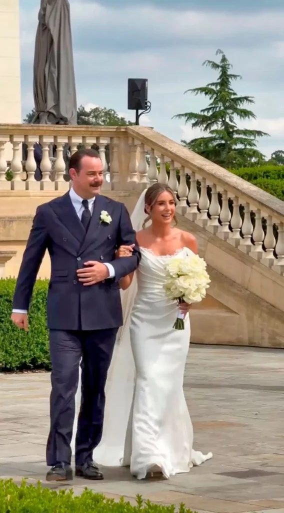 Danny Dyer reworded a famous West Ham chant during his father-of-the bride speech at his daughter’s wedding. The former EastEnders star walked Dani, 28, down the aisle before she married The Hammers winger Jarrod Bowen. The happy couple shared a kiss at the bottom of the white rose petal-lined aisle while floral sculptures and candles created a stunning backdrop.