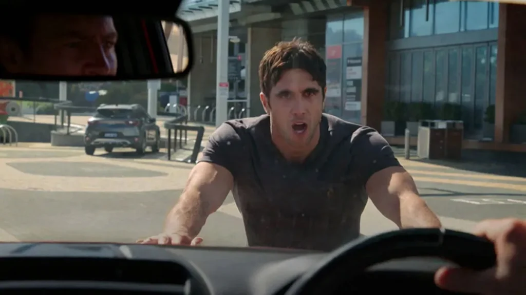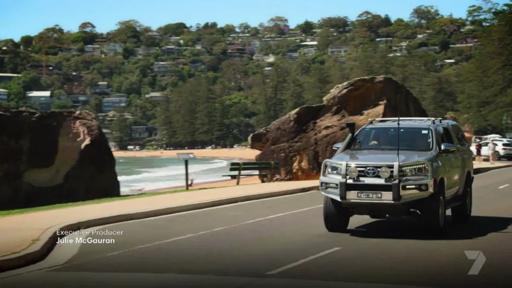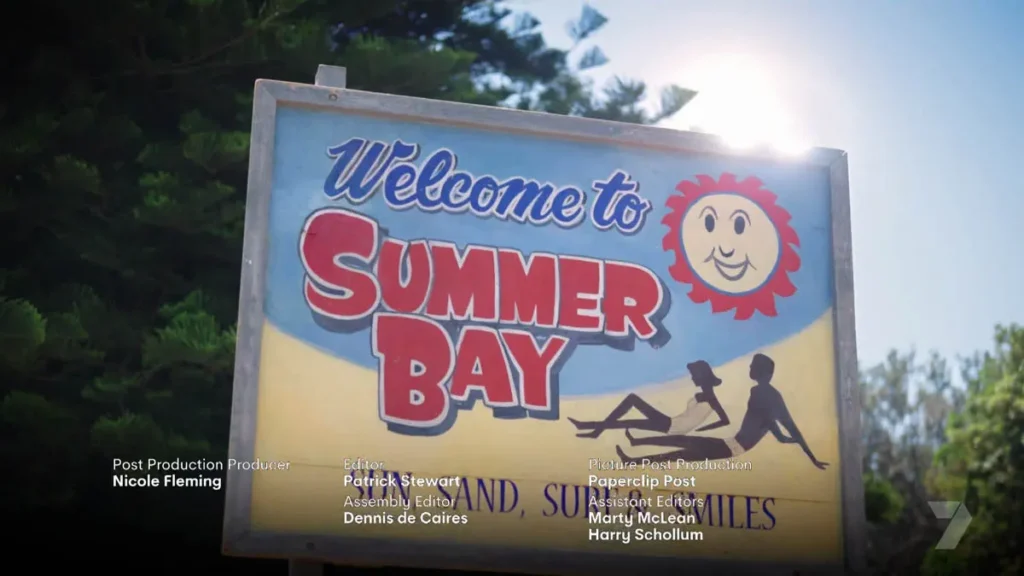 “Yeah mate, this is Summer Bay!” replies Brax, as Ricky smiles, before we see their car pass the iconic ‘Welcome to Summer Bay’ sign.