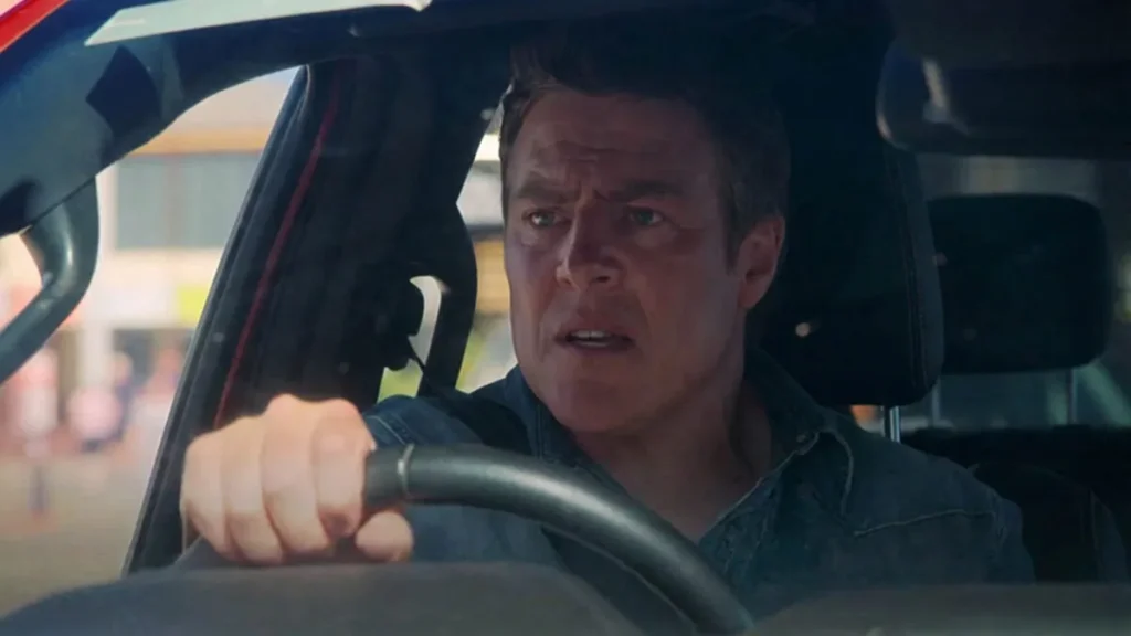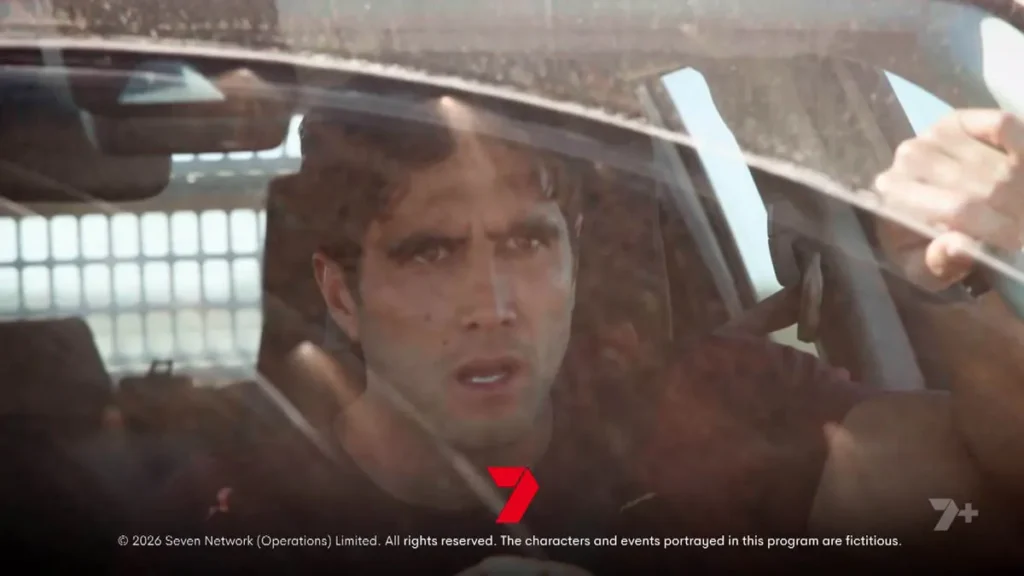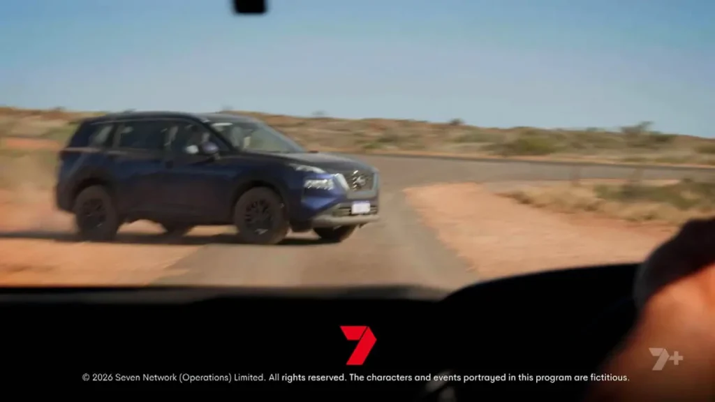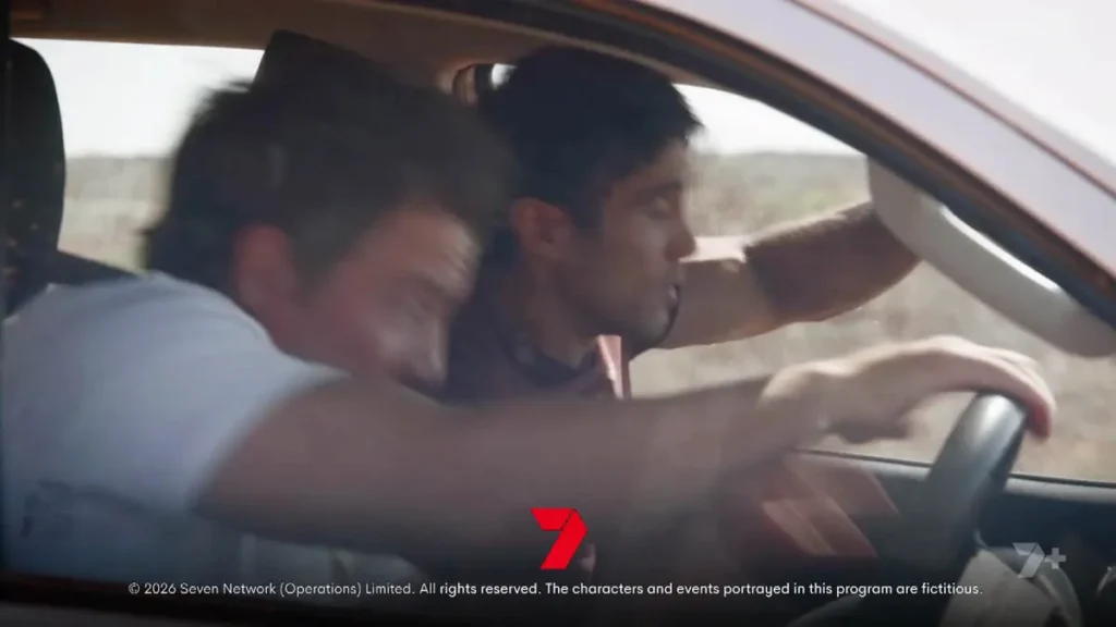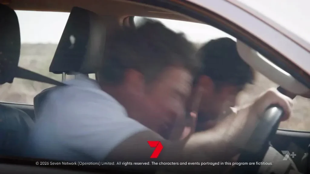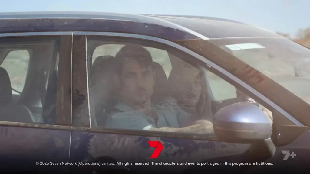 However, as the pair drive up the dirt path away from the ranch, Cash steers the ute out of the scrubland where they’ve been lying in wait, and drives straight into their path.